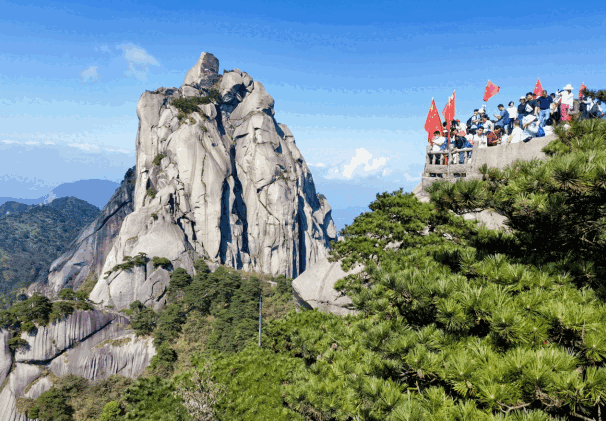 為進一步營造喜慶祥和的節(jié)日氛圍,天柱山景區(qū)還積極開展各類活動。其中,“立天柱之巔 燃愛國之情”活動以唱紅歌迎國慶的形式,組織72名青年手拿紅旗,在天柱山之巔,用嘹亮的歌聲為祖國慶生。此外,經典的黃梅戲表演,讓現場觀眾感受到黃梅戲文化的無窮魅力。