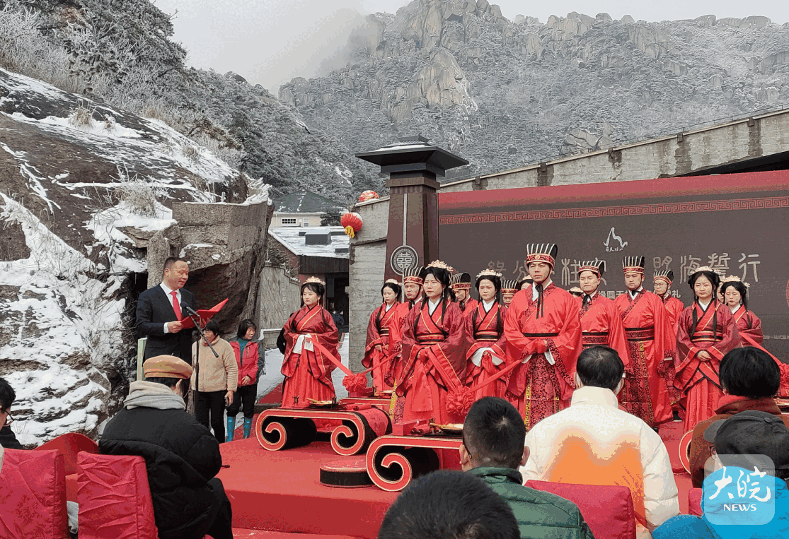 大皖新聞訊 緣分天柱定,山盟海誓行。2月14日上午,在群峰環(huán)繞間,婉若“綠寶石”的天柱山煉丹湖畔,一場穿超千年的“執(zhí)子之手 緣圓天柱”集體婚禮甜蜜舉行。