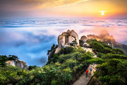 特色: 天柱山的云海是天柱山景觀中的一絕。每當(dāng)雨后放晴云開霧散時便出現(xiàn)云海,無邊際的云層,如大海之濱,波起峰涌,浪花飛濺,驚濤拍岸。漫天的云霧和層積云,隨風(fēng)飄移,時而上升,時而下墜,時而回旋,時而舒展,構(gòu)成一幅奇特的千變?nèi)f化的云海大觀。每當(dāng)云海涌來時,整個景區(qū)就被分成諸多云的海洋。被濃霧籠罩的山峰突然顯露出來,層層疊疊、隱隱約約,山之秀之奇在這里完美的表達(dá)出來。飄...